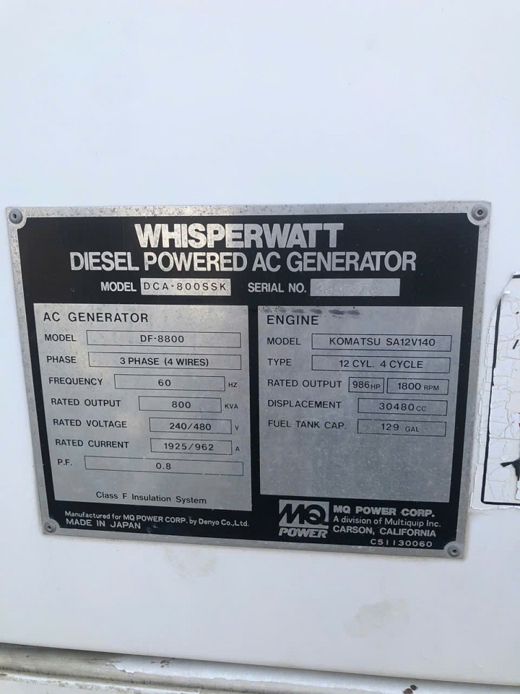 | Tên sản phẩm | Máy phát điện Denyo 800SSK |