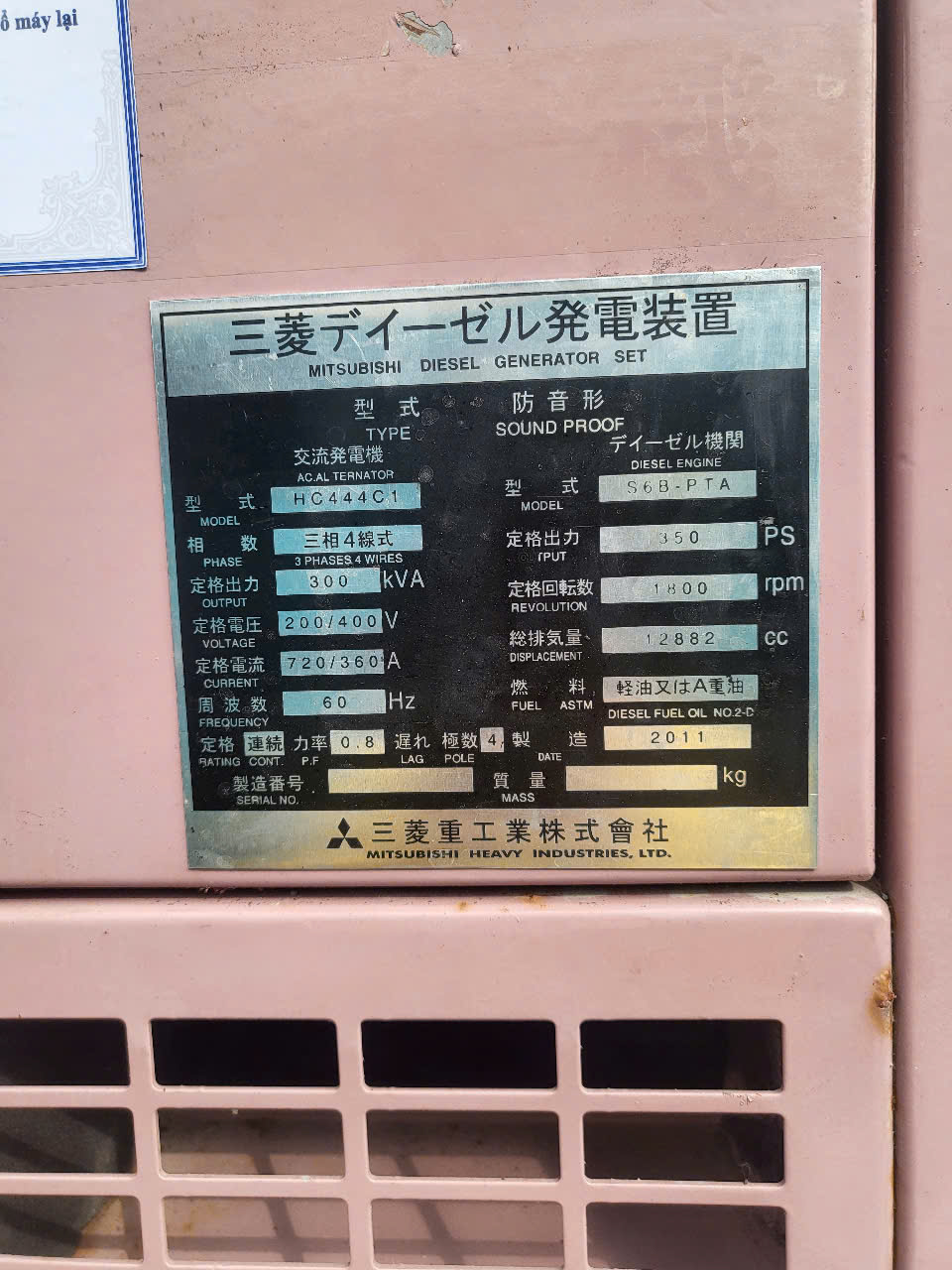 Tên sản phẩm | Máy phát điện cũ mitsu 300kva |